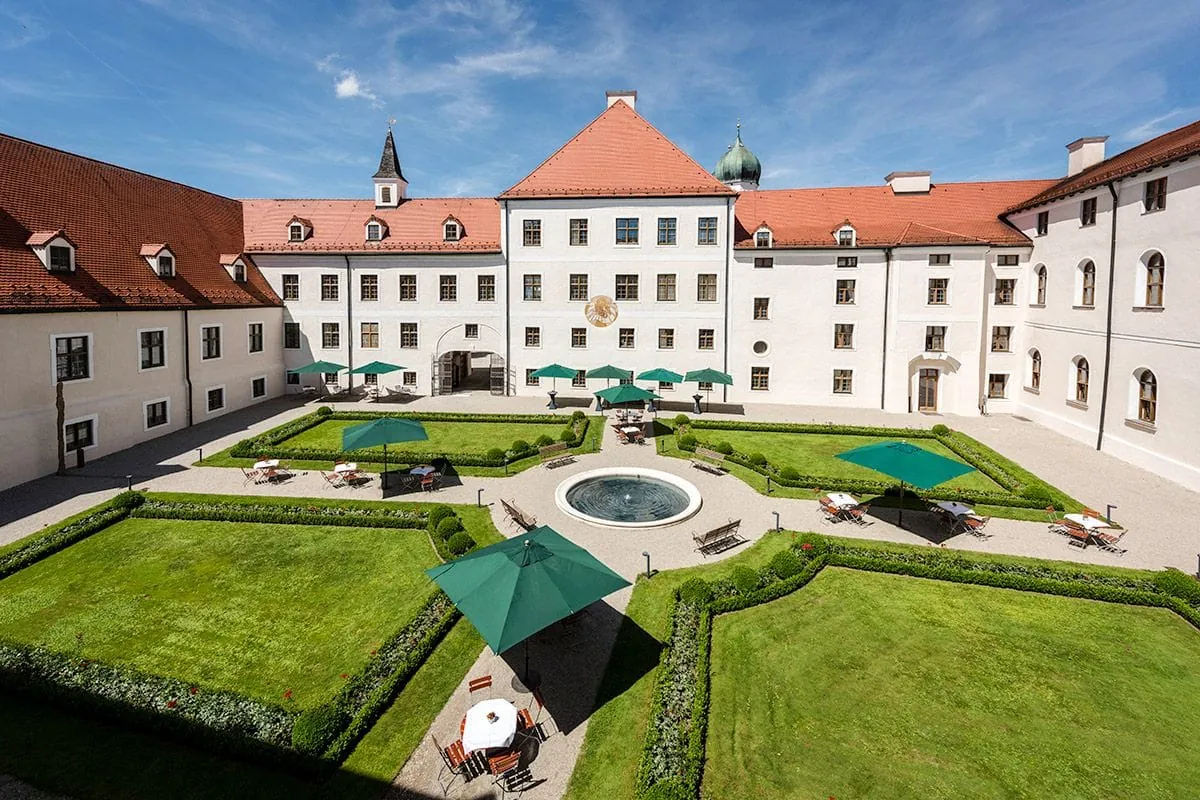 „Premium, Kunst, Gesundheit und nachhaltig Wellnessen“ lautet das Motto des ersten deutschen Hotels mit „EU Ecolabel“, dem offiziellen europäischen Umweltzeichen. Ökologisches, ökonomisches und soziales Handeln prägen das ganzheitliche Konzept des ebenso luxuriösen wie energieeffizienten Designhotels. Es ist erbaut in heimischer Holzbauweise mit eigenen Obstbäumen, Bienenstöcken, E-Fuhrpark und Klosterhof-Küche, die auf regionale Lieferanten wie auf saisonale Produkte setzt. Zeitgenössische Kunst auf Stelen durchzieht das bayerische Designhotel bis in die 64 Lofts, Suiten und Hotelzimmer mit Whirlpool.