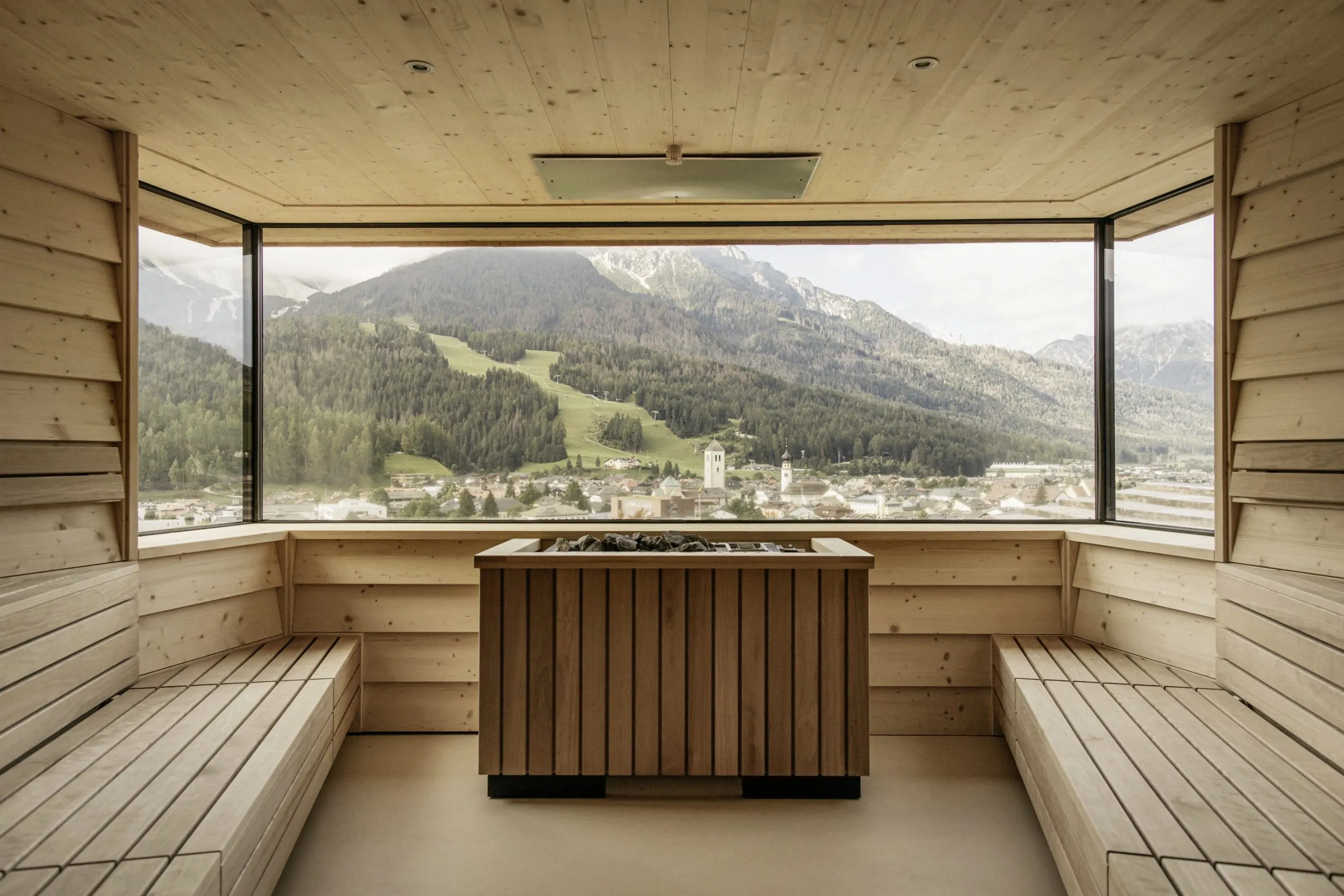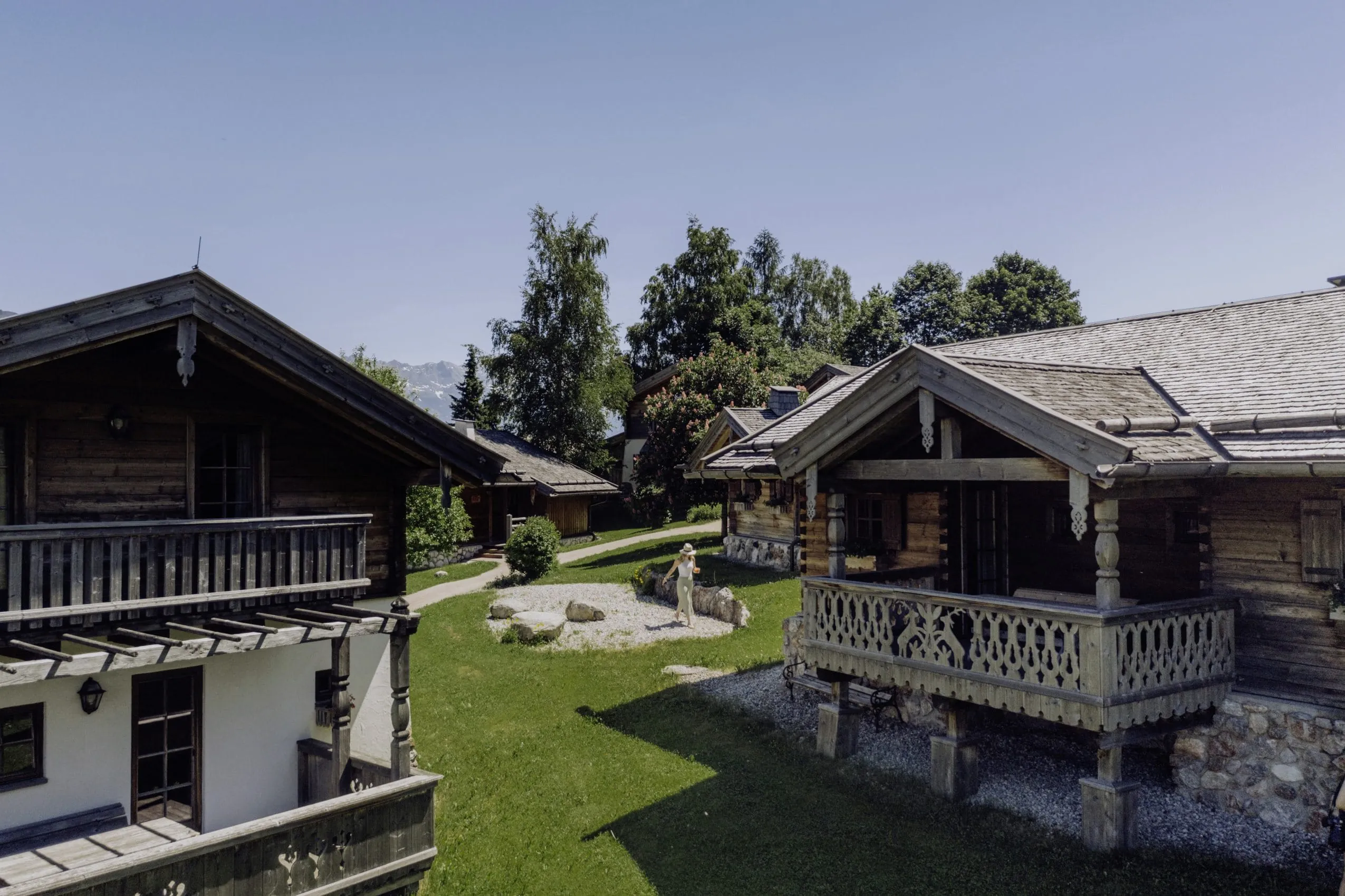- Nachhaltige Bauweise mit natürlichen Materialien wie Zirbenholz, Lärchenschindeln und Bachsteinen
